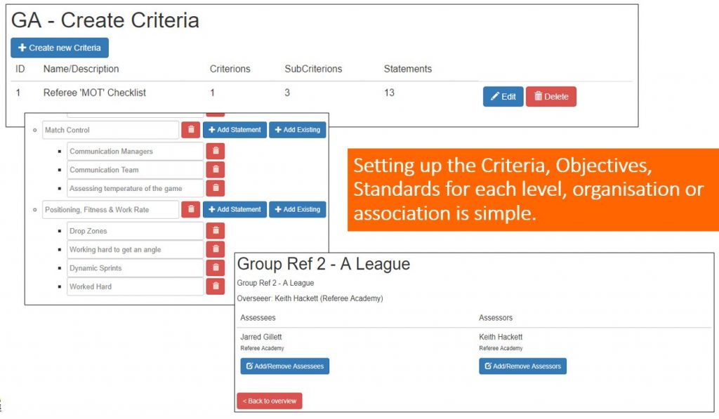 The platform enables you to set your own criteria for different levels of referees and follow what criteria they are reaching and how often are they reaching this skills bar. Monitor and follow a referees development and progress
